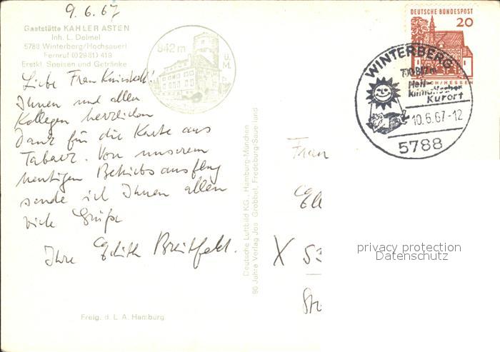 72225639 alte Postkarte Winterberg Hochsauerland Gaststaette Kahler Asten postalisch gelaufen Erhaltung siehe scans KatCode: 11110005958048