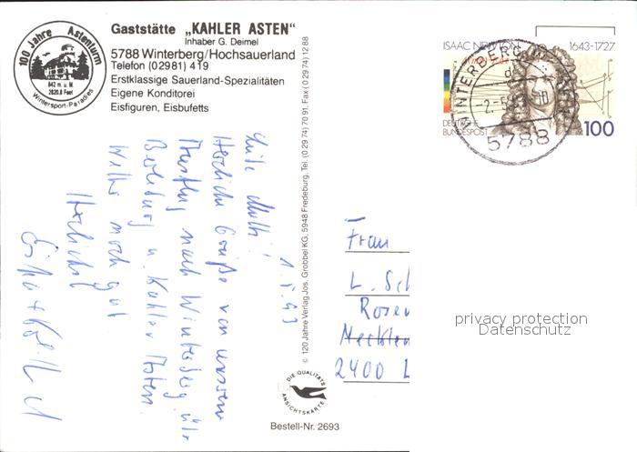71974288 alte Postkarte Winterberg Hochsauerland Gaststaette Kahler Asten postalisch gelaufen Erhaltung siehe scans KatCode: 11110005958048