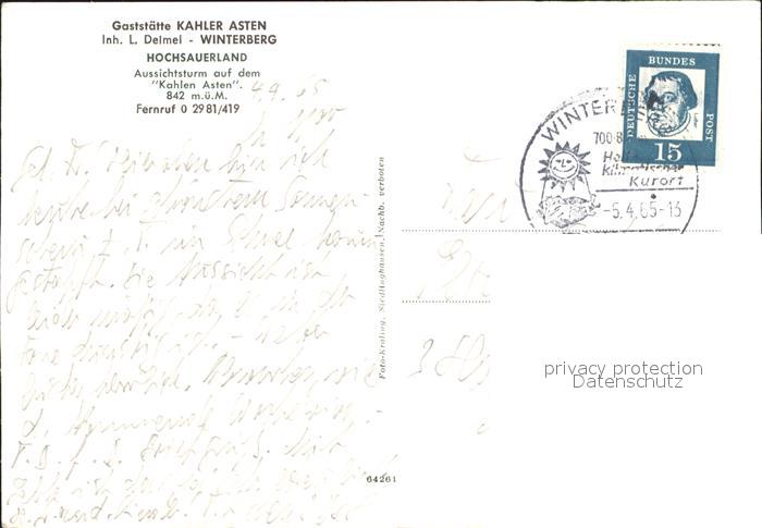 71940036 alte Postkarte Winterberg Hochsauerland Gaststaette Kahler Asten postalisch gelaufen Erhaltung siehe scans KatCode: 11110005958048