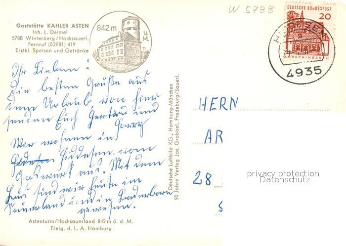 73100053 alte Postkarte Winterberg Hochsauerland Gaststaette Kahler Asten Fliegeraufnahme postalisch gelaufen Erhaltung siehe scans [WerneD78] KatCode: 11110005958048