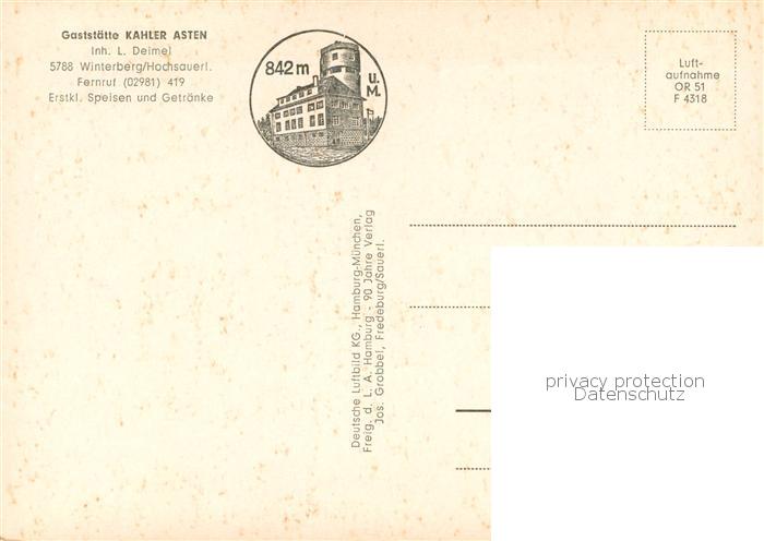 73761693 Winterberg Hochsauerland Gaststaette Kahler Asten Fliegeraufnahme postalisch nicht gelaufen Erhaltung siehe scans [WerneD78] KatCode: 11110005958048