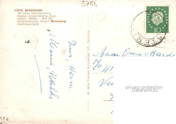 73864201 alte Postkarte Winterberg Hochsauerland Hotel Brinkmann Gastraeume Kaminzimmer postalisch gelaufen Erhaltung siehe scans [WerneD78] KatCode: 11110005958048