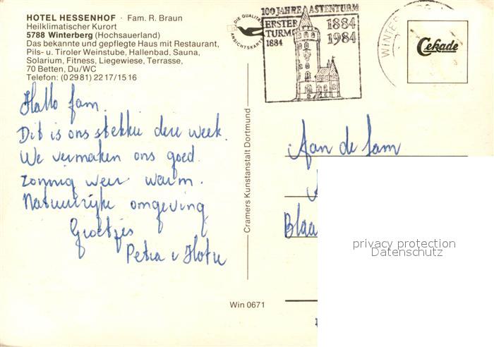 73308164 alte Postkarte Winterberg Hochsauerland Hotel Hessenhof Hallenbad postalisch gelaufen Erhaltung siehe scans [LiesaD40] KatCode: 11110005958048