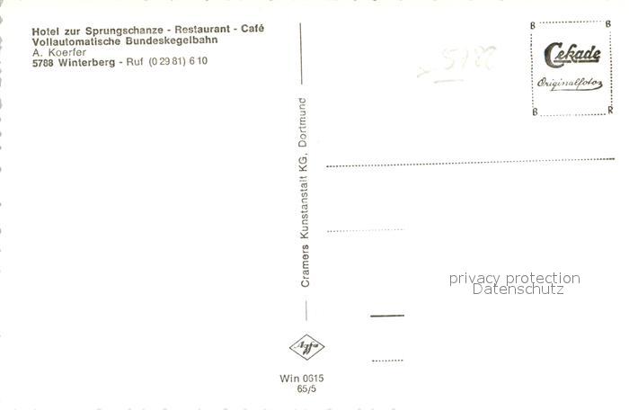 42965499 Winterberg Hochsauerland Hotel zur Sprungschanze Winter postalisch nicht gelaufen Erhaltung siehe scans [KathaD81] Kath Katcode 11110005958048