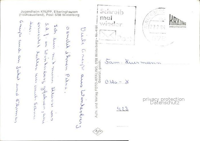 72201008 alte Postkarte Winterberg Hochsauerland Jugendheim Krupp Elkeringshausen postalisch gelaufen Erhaltung siehe scans KatCode: 11110005958048