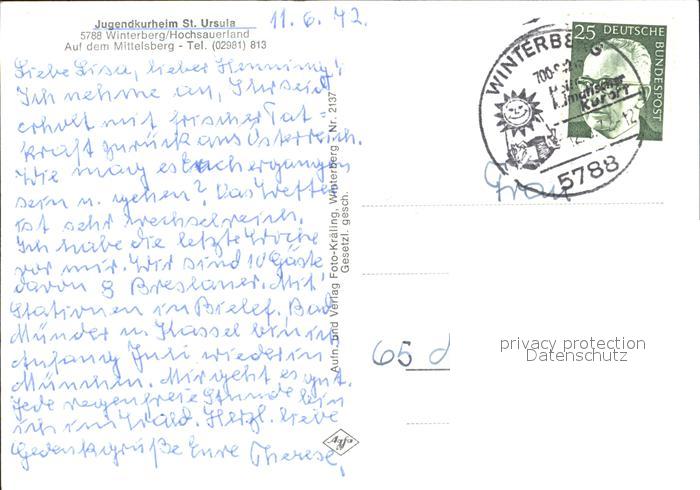 72088829 alte Postkarte Winterberg Hochsauerland Jugendkurheim St. Ursula postalisch gelaufen Erhaltung siehe scans KatCode: 11110005958048