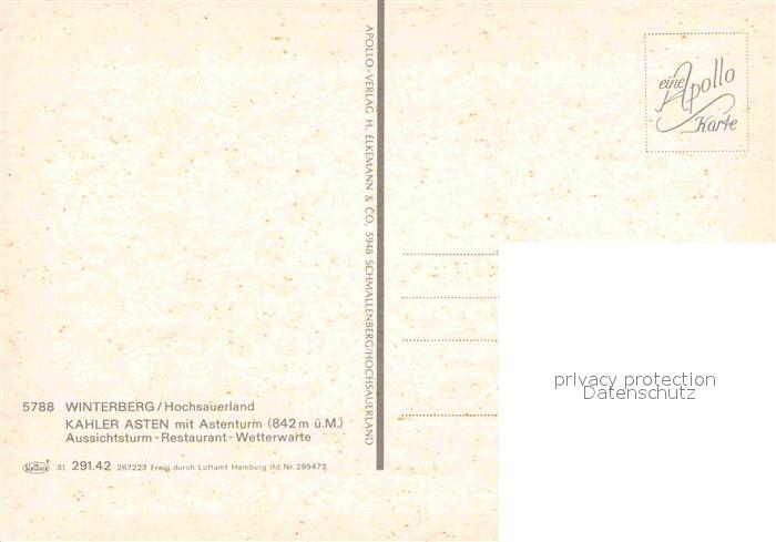 72781766 Winterberg Hochsauerland Kahler Asten mit Astenturm Aussichtsturm Restaurant Wetterwarte Fliegeraufnahme postalisch nicht gelaufen Erhaltung siehe scans [FriedD77] KatCode: 11110005958048