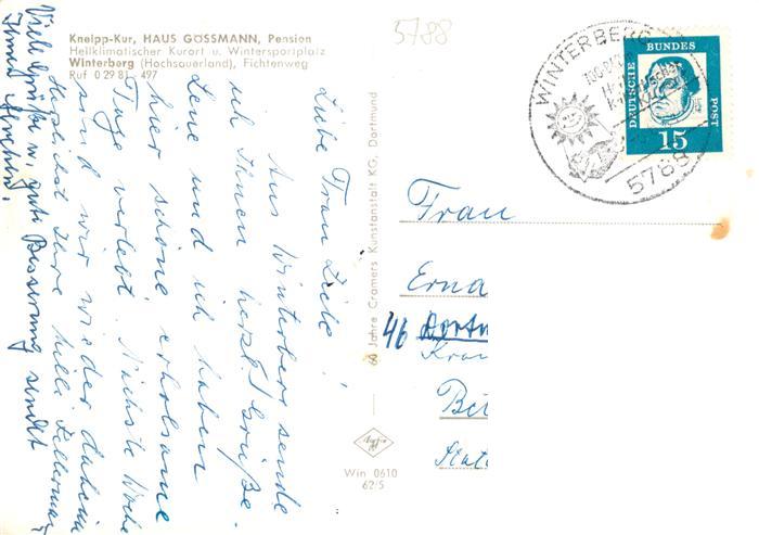 73890542 alte Postkarte Winterberg Hochsauerland Kneipp Kurhaus Goessmann Pension postalisch gelaufen Erhaltung siehe scans [FriedD77] KatCode: 11110005958048