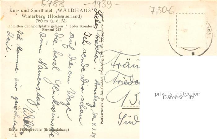 73749258 alte Postkarte Winterberg Hochsauerland Kur und Sporthotel Waldhaus postalisch gelaufen Erhaltung siehe scans [WerneD78] KatCode: 11110005958048