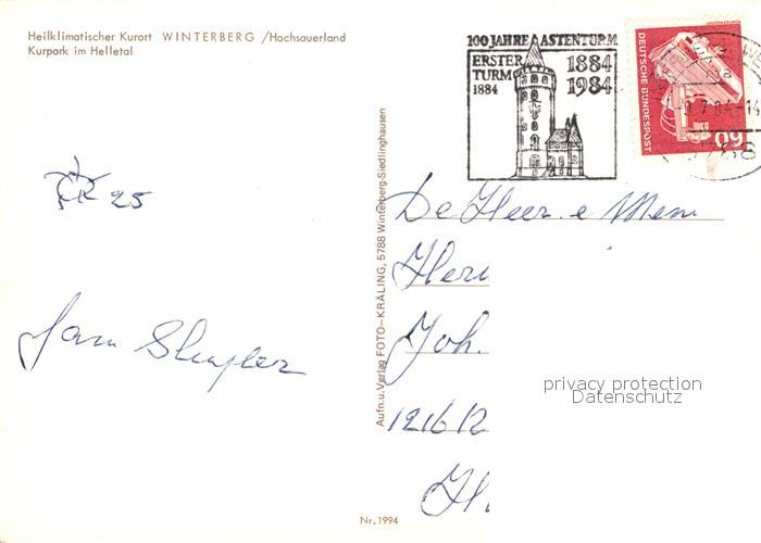 72929437 alte Postkarte Winterberg Hochsauerland Kurpark im Helletal Konzertplatz postalisch gelaufen Erhaltung siehe scans [LiesaD40] KatCode: 11110005958048