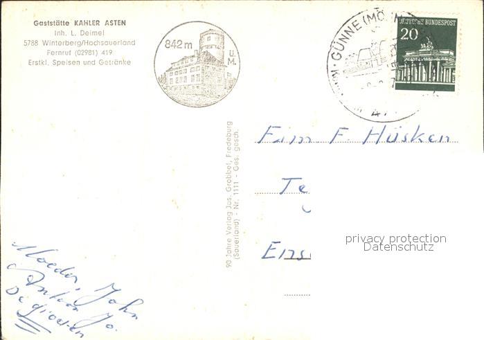 72307593 alte Postkarte Winterberg Hochsauerland Lennequelle Astenturm Ruhrquelle postalisch gelaufen Erhaltung siehe scans KatCode: 11110005958048