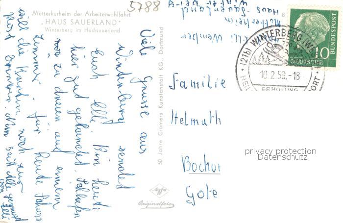 73705835 alte Postkarte Winterberg Hochsauerland Muetterkurheim der AWO Haus Sauerland postalisch gelaufen Erhaltung siehe scans [WerneD78] KatCode: 11110005958048