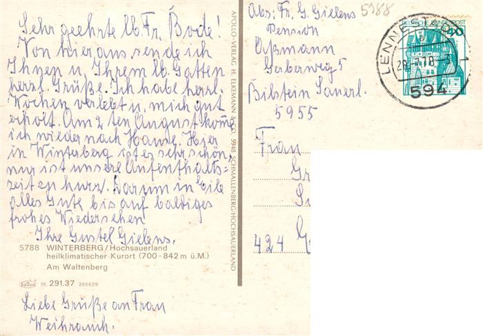 73937823 Winterberg Hochsauerland NRW Am Waltenberg postalisch gelaufen Erhaltung siehe scans [FriedD77] alte Postkarte Frie Katcode 11110005958048