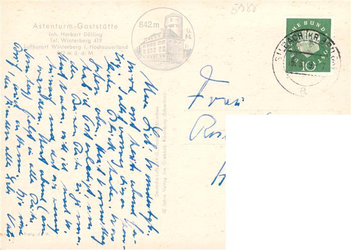 73942497 Winterberg Hochsauerland NRW Astenturm Gaststaette postalisch gelaufen Fliegeraufnahme Erhaltung siehe scans [WerneD78] Fliegeraufnahme alte Postkarte Wern Katcode 11110005958048