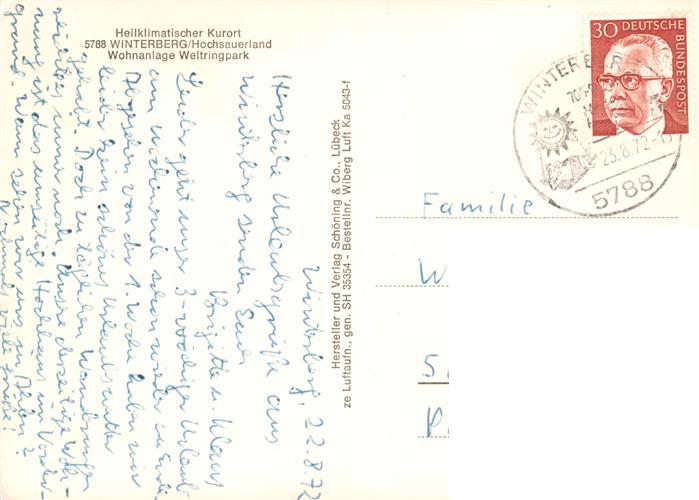 73942518 Winterberg Hochsauerland NRW Fliegeraufnahme Wohnanlage Weltringpark postalisch gelaufen Erhaltung siehe scans [WerneD78] alte Postkarte Wern Katcode 11110005958048
