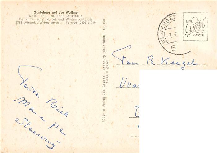 73942885 Winterberg Hochsauerland NRW Gaestehaus Auf der Wallme Gastraeume postalisch gelaufen Erhaltung siehe scans [WerneD78] alte Postkarte Wern Katcode 11110005958048