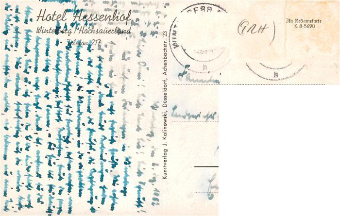 73937355 Winterberg Hochsauerland NRW Hotel Hessenhof Gesellschaftsraum Ortsansicht postalisch gelaufen Erhaltung siehe scans [FriedD77] alte Postkarte Frie Katcode 11110005958048