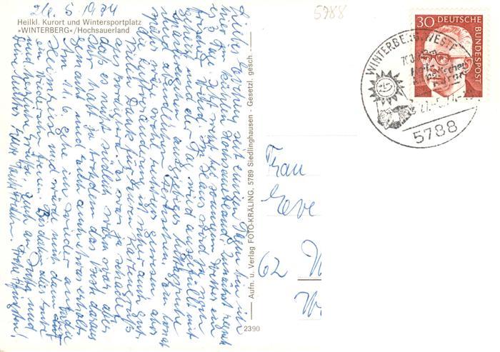73942517 Winterberg Hochsauerland NRW Ortspartien Kurkonzert Schwimmbad postalisch gelaufen Erhaltung siehe scans [WerneD78] alte Postkarte Wern Katcode 11110005958048