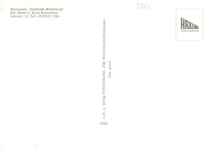 73942516 Winterberg Hochsauerland NRW Restaurant Stadthalle Winterberg postalisch nicht gelaufen Erhaltung siehe scans [WerneD78] Wern Katcode 11110005958048