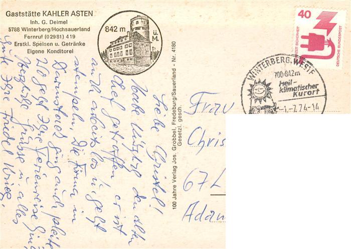 73943272 Winterberg Hochsauerland NRW St Georgsprungschanze Wetterstation Freibad Bobhaus Ruhrquelle Lennequelle Jugendheim St Ursula Am Nordhang Schullandheim Bochumg Muetterkurheim postalisch gelaufen Erhaltung siehe scans [WerneD78] alte Postkarte Wern Katcode 11110005958048