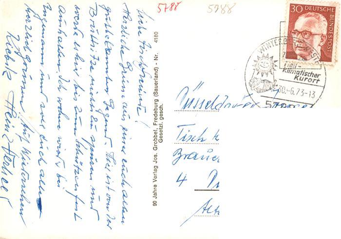 73943274 Winterberg Hochsauerland NRW St Georgsprungschanze Wetterstation Freibad Bobhaus Ruhrquelle Lennequelle Jugendheim St Ursula Am Nordhang Schullandheim Bochumg Muetterkurheim postalisch gelaufen Erhaltung siehe scans [WerneD78] alte Postkarte Wern Katcode 11110005958048