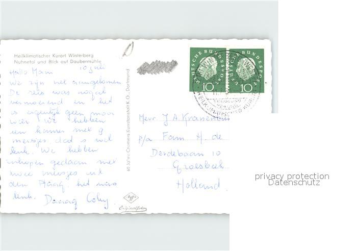 72108432 alte Postkarte Winterberg Hochsauerland Nuhnetal Daubermuehle postalisch gelaufen Erhaltung siehe scans KatCode: 11110005958048