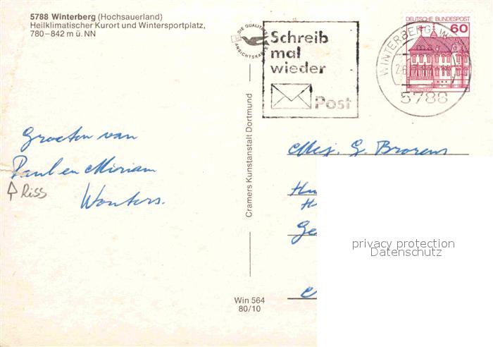 72860240 alte Postkarte Winterberg Hochsauerland Panorama Kurpark Sprungschanzen Kahler Asten postalisch gelaufen Erhaltung siehe scans [AndreD76] KatCode: 11110005958048
