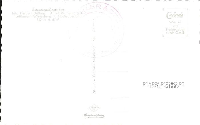 72477695 Winterberg Hochsauerland Panorama mit Astenturm Berggasthof postalisch nicht gelaufen Erhaltung siehe scans KatCode: 11110005958048