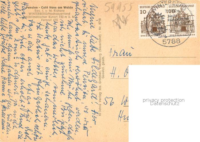 73764668 alte Postkarte Winterberg Hochsauerland Pension-Cafe Haus am Walde Aussenansicht postalisch gelaufen Erhaltung siehe scans [LiesaD40] KatCode: 11110005958048
