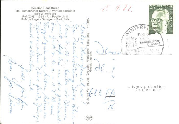72100391 alte Postkarte Winterberg Hochsauerland Pension Haus Suren postalisch gelaufen Erhaltung siehe scans KatCode: 11110005958048
