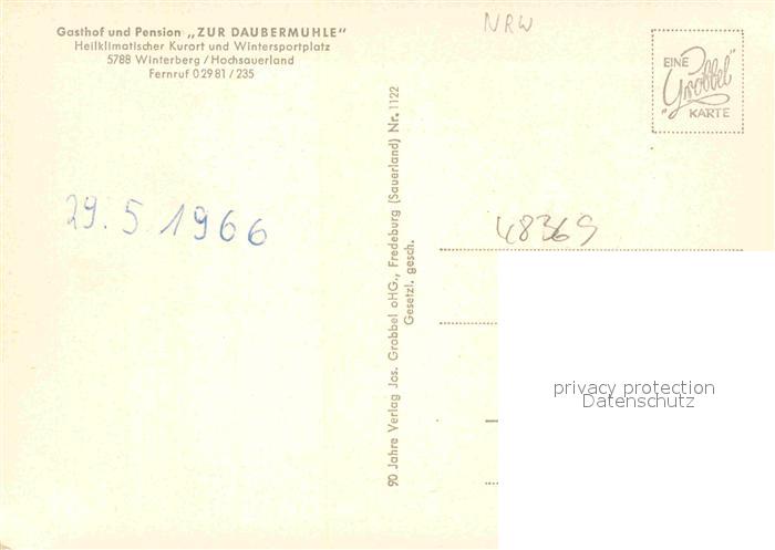 72854824 Winterberg Hochsauerland Pension Zur Daubermuehle postalisch nicht gelaufen Erhaltung siehe scans [AndreD76] KatCode: 11110005958048