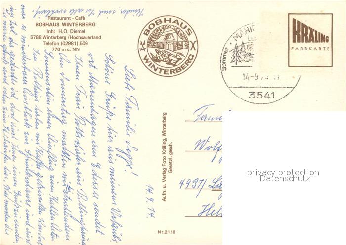 73688450 alte Postkarte Winterberg Hochsauerland Restaurant Cafe Bobhaus Winterberg Christbaum Winterabend postalisch gelaufen Erhaltung siehe scans [FriedD77] KatCode: 11110005958048