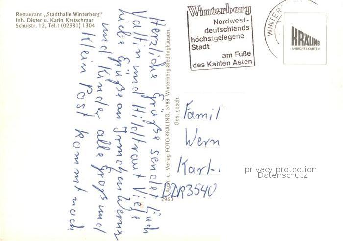 73198079 alte Postkarte Winterberg Hochsauerland Restaurant Stadthalle postalisch gelaufen Erhaltung siehe scans [KathaD81] KatCode: 11110005958048
