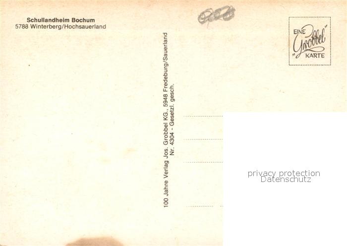 73312219 Winterberg Hochsauerland Schullandheim Bochum postalisch nicht gelaufen Erhaltung siehe scans [NatalD47] KatCode: 11110005958048