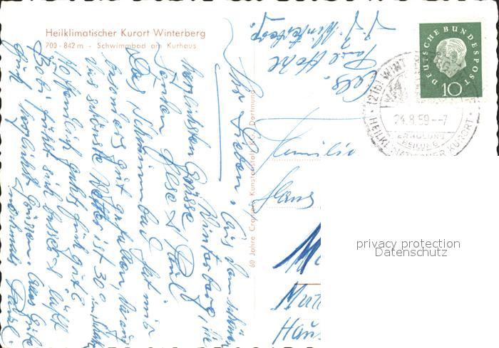 72053830 alte Postkarte Winterberg Hochsauerland Schwimmbad am Kurhaus Heilklimatischer Kurort postalisch gelaufen Erhaltung siehe scans KatCode: 11110005958048