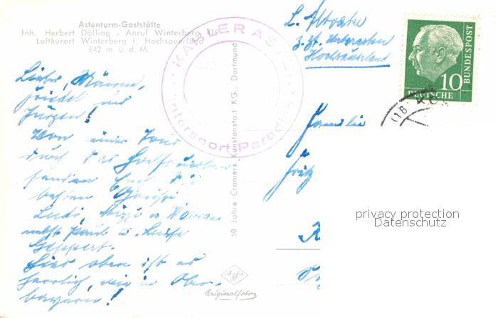 72919958 alte Postkarte Winterberg Hochsauerland Silbecke Astenturm Orketal Kurhaus Panorama Ruhrquelle postalisch gelaufen Erhaltung siehe scans [WerneD78] KatCode: 11110005958048