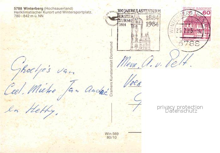 72684175 alte Postkarte Winterberg Hochsauerland Sprungschanze Panorama Kath Kirche Kahler Asten Kurpark postalisch gelaufen Erhaltung siehe scans [WerneD78] KatCode: 11110005958048