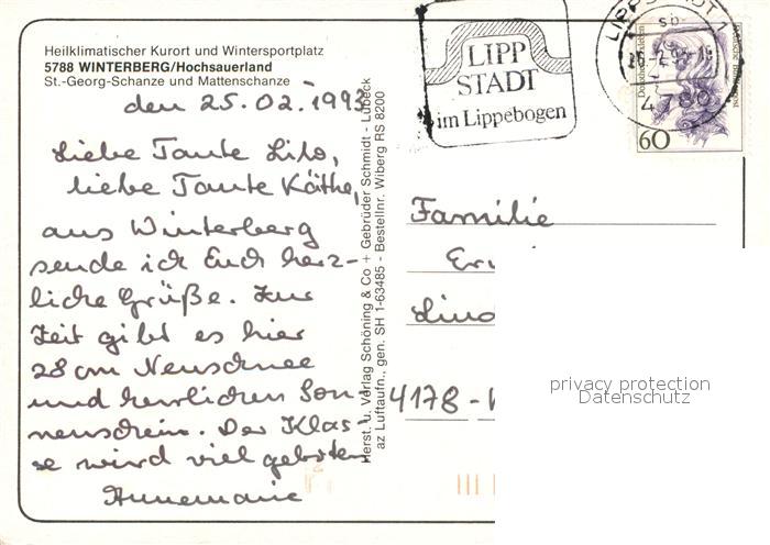 73306220 alte Postkarte Winterberg Hochsauerland St Georg Schanze und Mattenschanze Fliegeraufnahme postalisch gelaufen Erhaltung siehe scans [WerneD78] KatCode: 11110005958048