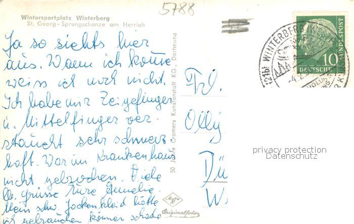 73705832 alte Postkarte Winterberg Hochsauerland St Georg Sprungschanze am Herrloh postalisch gelaufen Erhaltung siehe scans [WerneD78] KatCode: 11110005958048