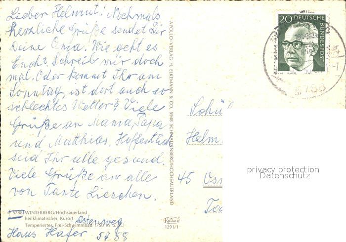 71972387 alte Postkarte Winterberg Hochsauerland Temperiertes Frei Schwimmbad postalisch gelaufen Erhaltung siehe scans KatCode: 11110005958048