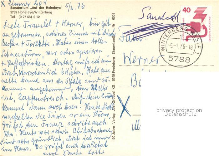 73660980 alte Postkarte Winterberg Hochsauerland — postalisch gelaufen Erhaltung siehe scans [FriedD77] KatCode: 11110005958048