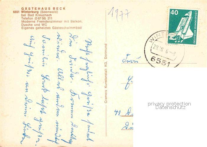 72658170 alte Postkarte Winterburg Gaestehaus Beck postalisch gelaufen Erhaltung siehe scans [AndreD76] KatCode: 11110007133116