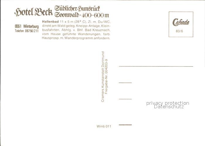 72518985 Winterburg Hotel Beck Hunsrueck postalisch nicht gelaufen Erhaltung siehe scans KatCode: 11110007133116