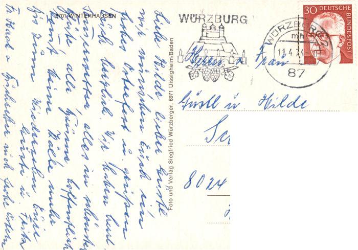 73886786 alte Postkarte Winterhausen Ortsansichten Kirche Partie am Main postalisch gelaufen Erhaltung siehe scans [FriedD77] KatCode: 11110009679206