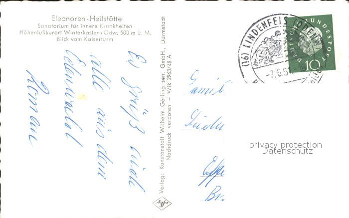 72098452 alte Postkarte Winterkasten Lindenfels Elenoren Heilstaette postalisch gelaufen Erhaltung siehe scans KatCode: 11110006431015