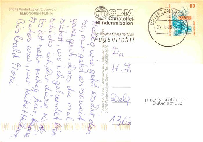 72782547 alte Postkarte Winterkasten Lindenfels Fliegeraufnahme Eleonoren-Klinik postalisch gelaufen Erhaltung siehe scans [LiesaD40] KatCode: 11110006431015