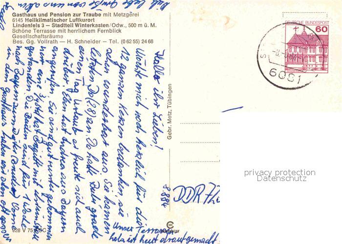 72919586 alte Postkarte Winterkasten Lindenfels Gasthaus Pension zur Traube Viehweide Kuehe postalisch gelaufen Erhaltung siehe scans [FriedD77] KatCode: 11110006431015