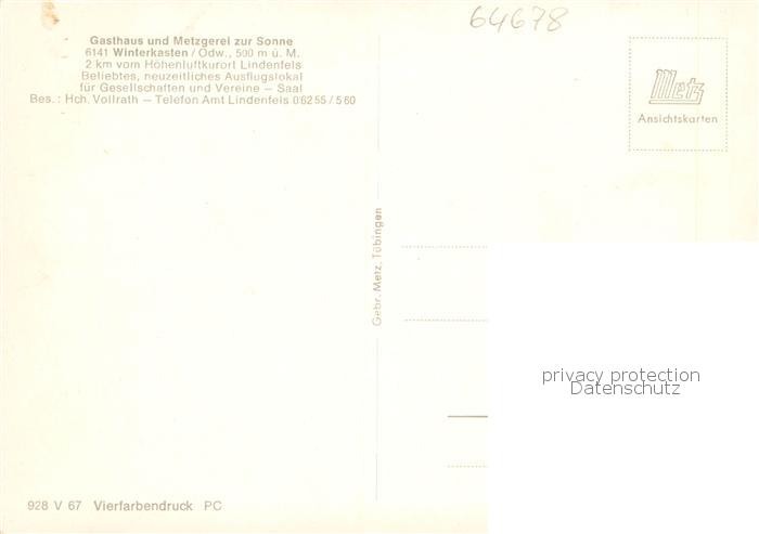 73858363 Winterkasten Lindenfels Gasthaus zur Sonne Restaurant Ortsansicht postalisch nicht gelaufen Erhaltung siehe scans [FriedD77] KatCode: 11110006431015