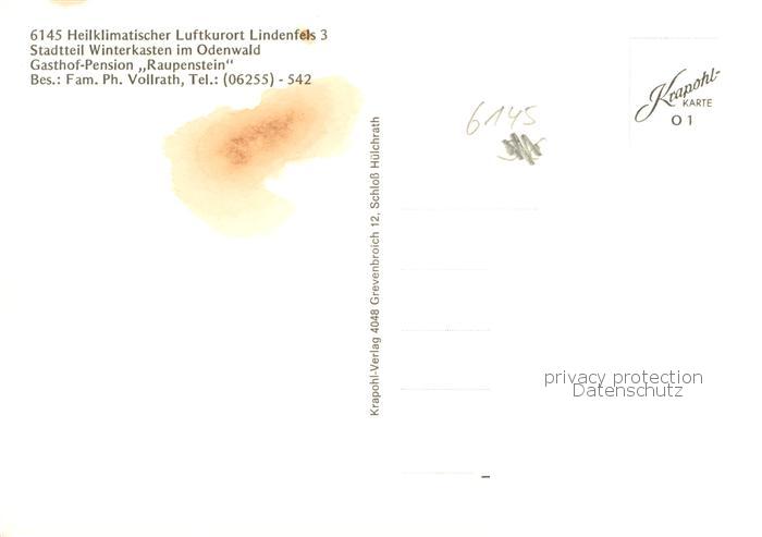 73762757 Winterkasten Lindenfels Gasthof Pension Raupenstein Gastraeume Terrasse postalisch nicht gelaufen Erhaltung siehe scans [FriedD77] KatCode: 11110006431015
