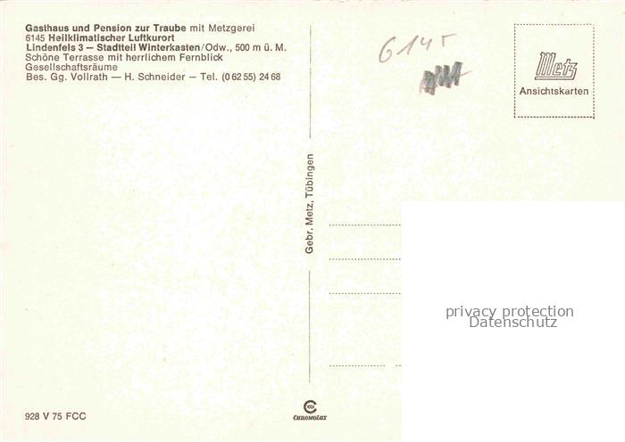 74043507 Winterkasten Lindenfels Hessen Gasthaus Pension zur Traube Viehweide Kuehe postalisch nicht gelaufen Erhaltung siehe scans [FriedD77] KatCode: 11110006431015